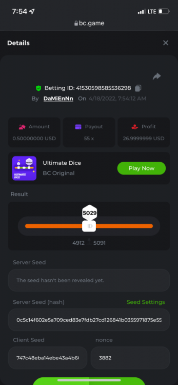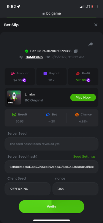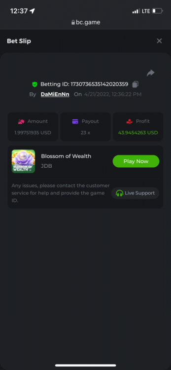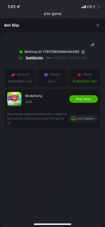2. Limbo $2.00 bet 100x Limbo-Win 74011280171599051 7/15/2022, 9:47:30 AM $200.00 ☝lost bet ID link. So copied and pasted from my wallet transactions. https://bc.game/sd/?sd=10ORWSSCI1A58Z $4.00 bet 20x https://bc.game/sd/?sd=10ORXEQA92L4B7 $0.25 bet 500x Bounty.
