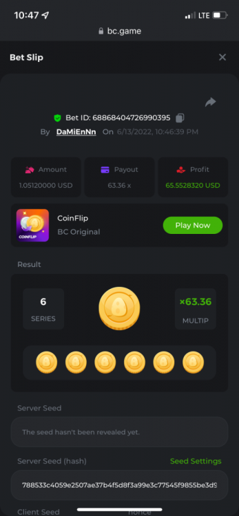 5. https://bc.game/sd/?sd=10O6BAU0ZBZQC3 30x $1.00 bet https://bc.game/sd/?sd=10O6BR73ZJH1QR 1046.67x $1.00 bet https://bc.game/sd/?sd=10O6C9TS5YV5EB 98.63x $10.00 bet
